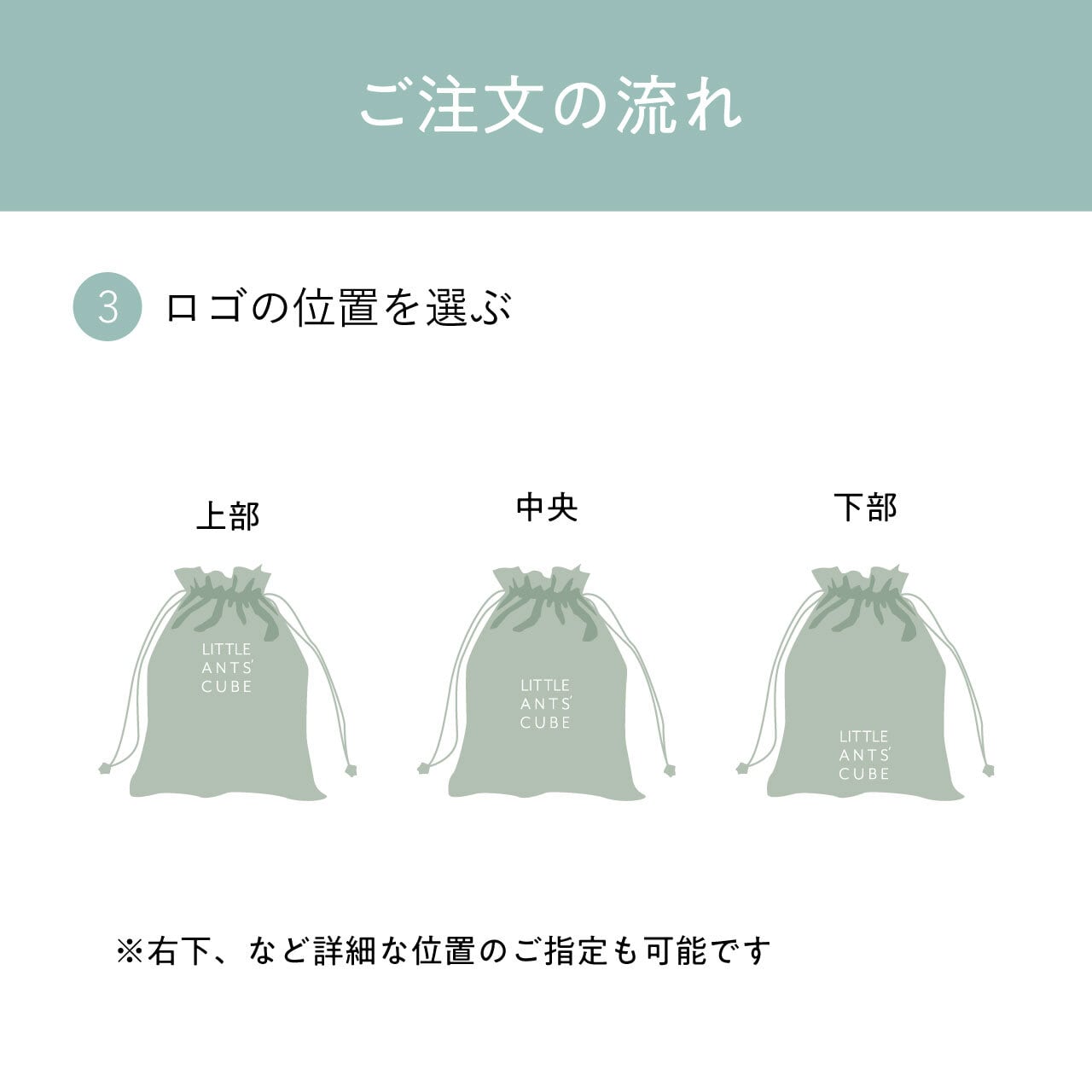 サテン生地の巾着袋に、ご自身のショップのロゴを印刷できます。
