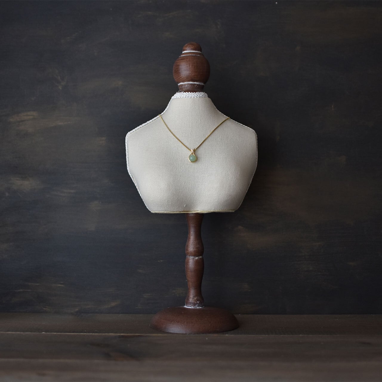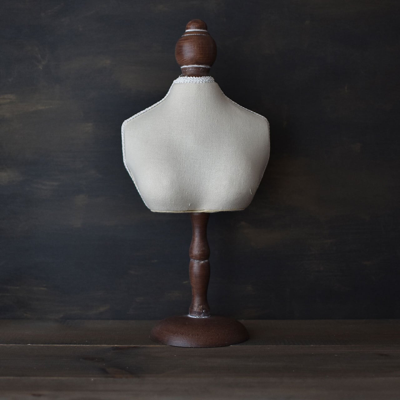 アンティークな木目が美しいトルソーです。