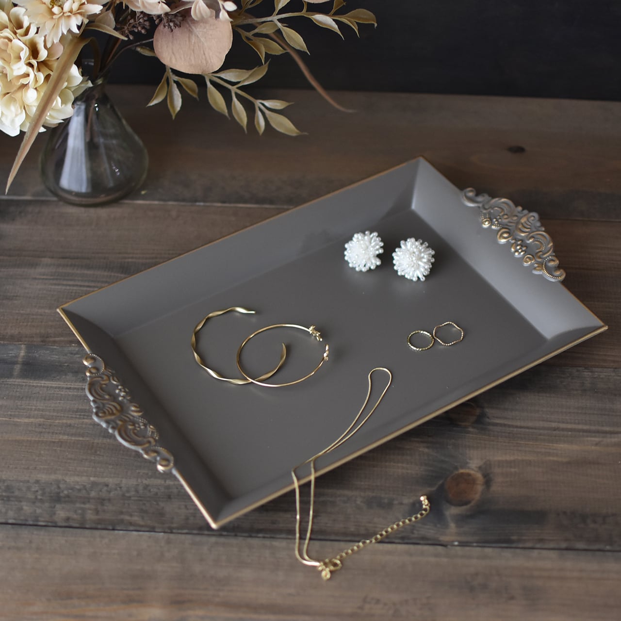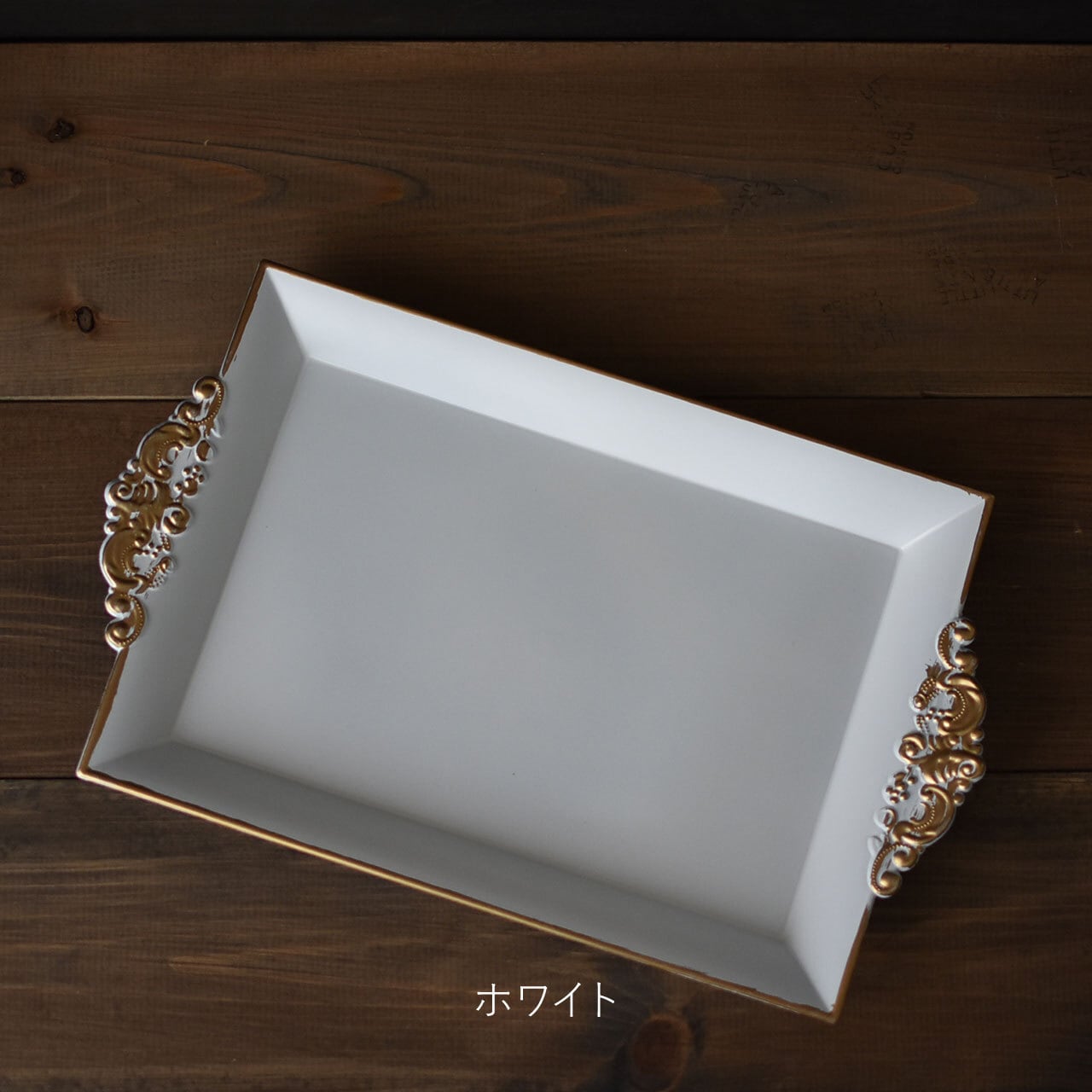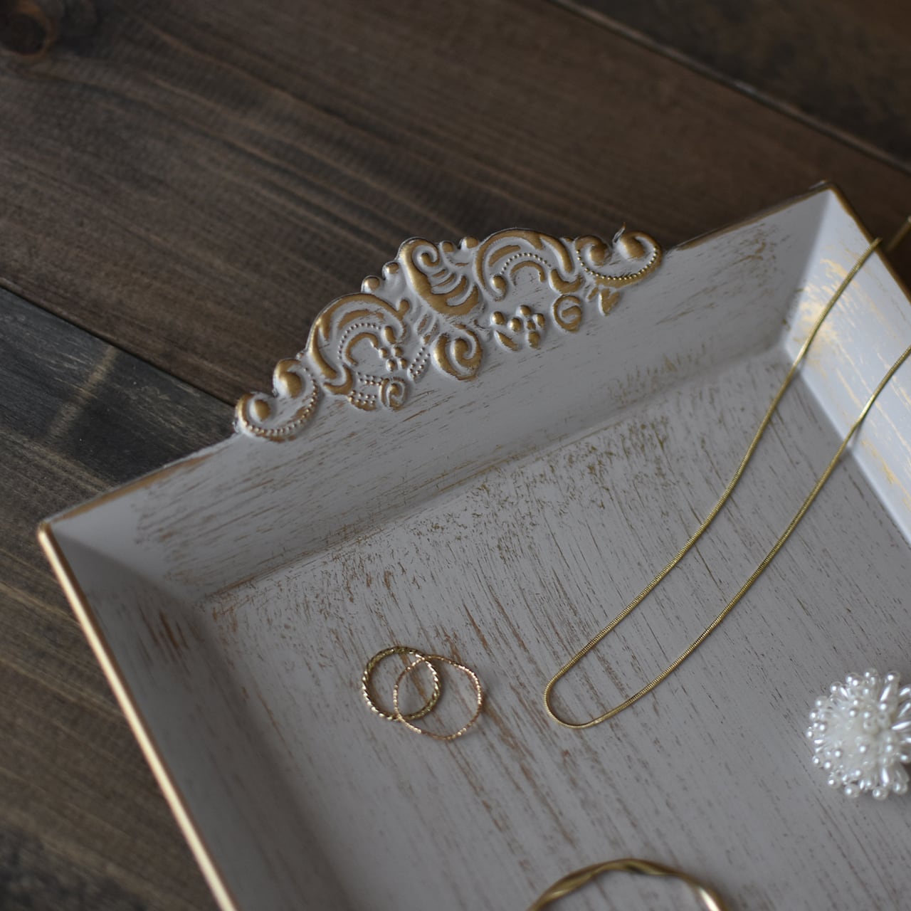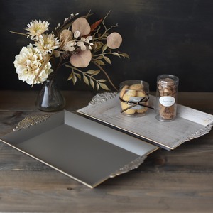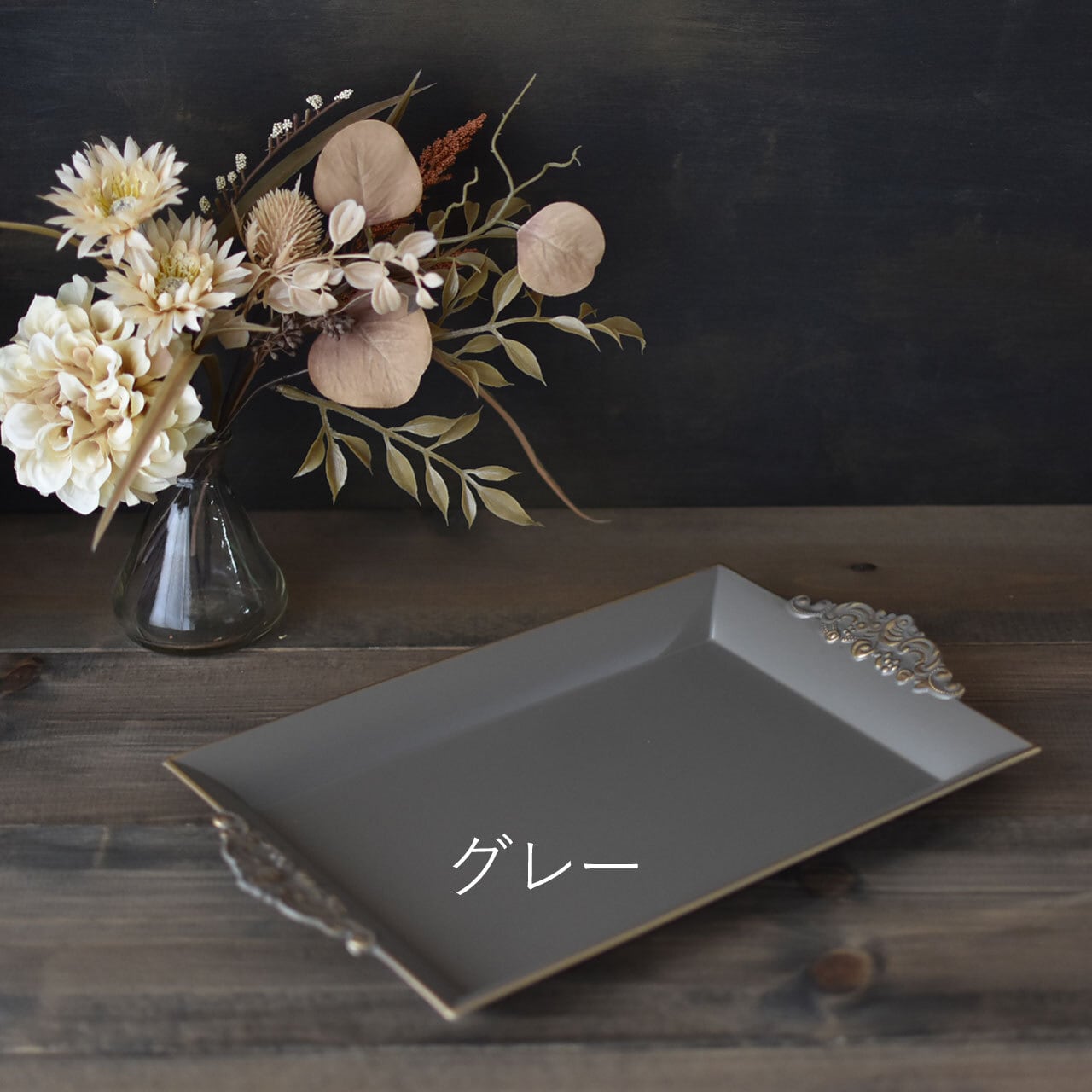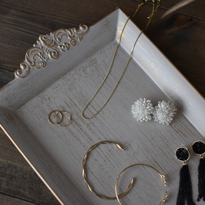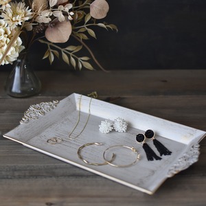 プラスティックのお皿風トレイにアンティーク加工を施した商品です。