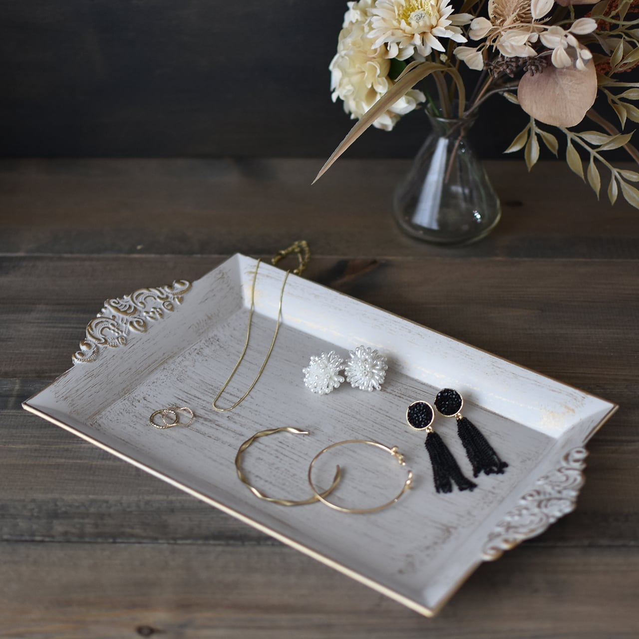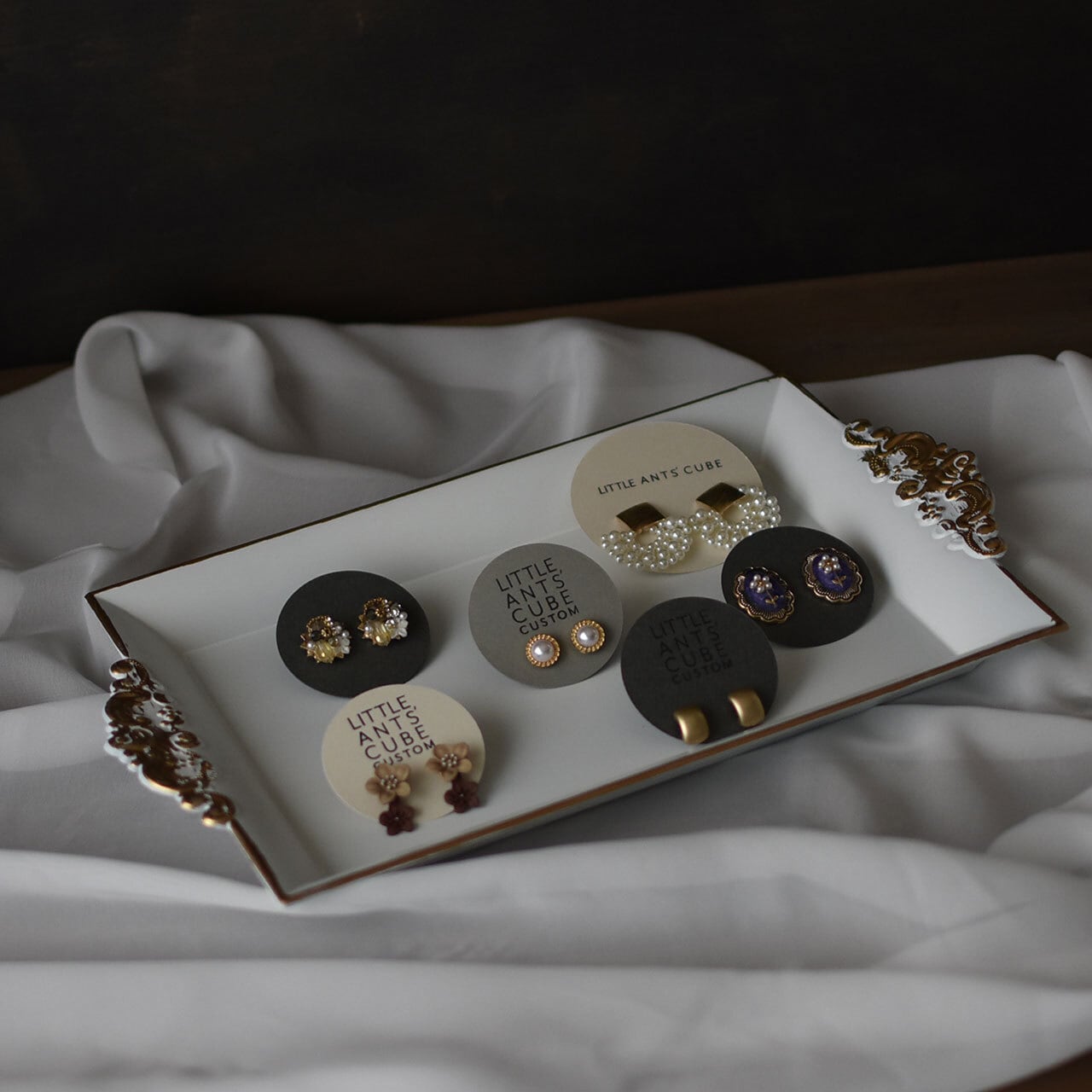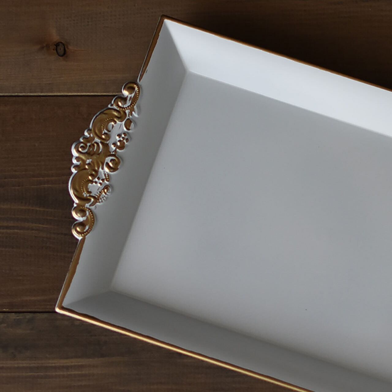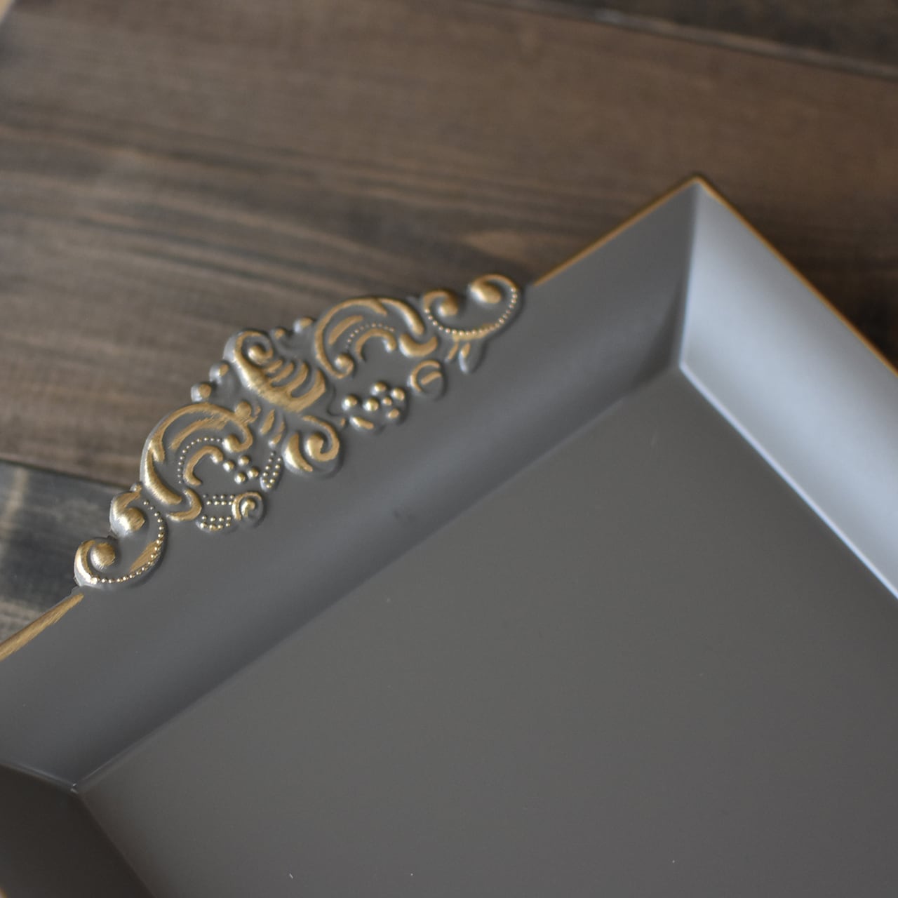 プラスティックのお皿風トレイにアンティーク加工を施した商品です。