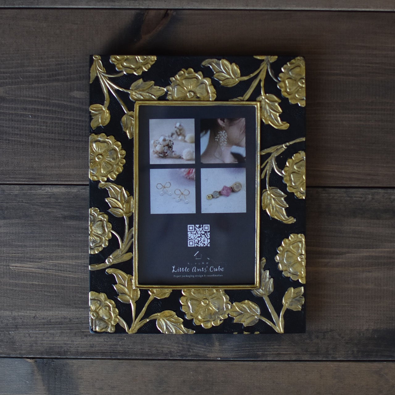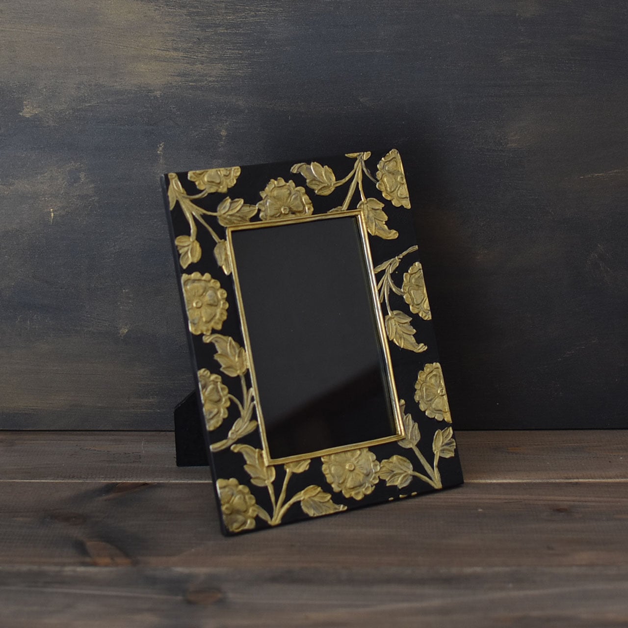 フォトフレーム 花柄 ハガキサイズ用 ゴールド×ブラック